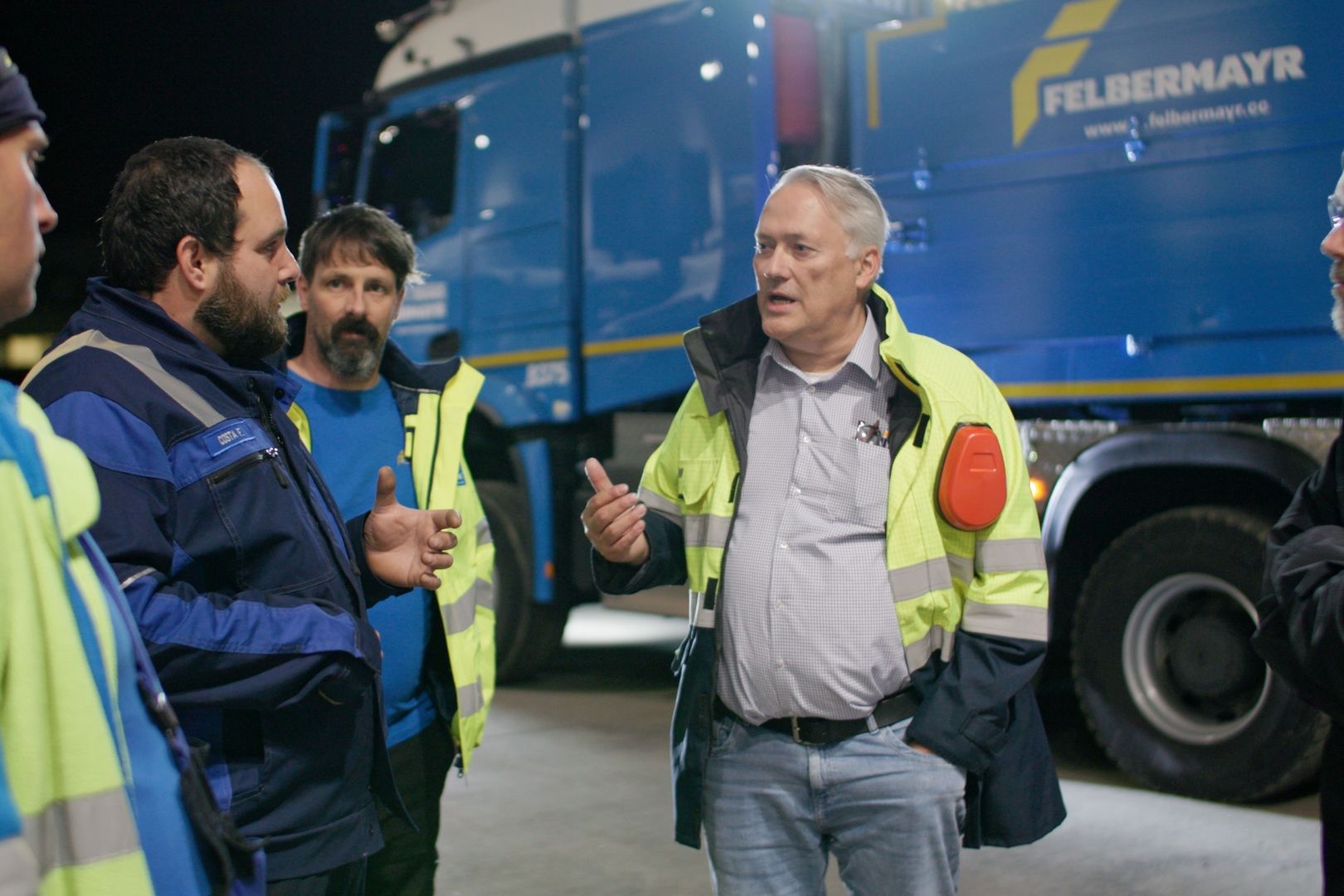 Gemeinsam mit dem Werkschutz diskutierte er den optimalen Weg ins und durchs Werk. „Tor 2 schied schnell aus, denn der Konvoi hätte nicht durch die Überdachung der Einfahrt gepasst. Auch die Brücke, die die Werksteile verbindet, trägt solche Lasten nicht“, erklärt Höhle. Der Werkschutz überwachte parallel den Verkehr und sorgte für die nötigen Ausweise und Unterweisungen, nicht nur für die Fahrer, sondern auch für das Team, das die Krane bediente. Damit nicht plötzlich eine Baustelle die Strecke verengte, war auch das Facility Management informiert. An allen Haltepunkten durfte das Gefährt zudem wegen der hohen Lasten nicht auf Kanaldeckeln zum Stehen kommen.