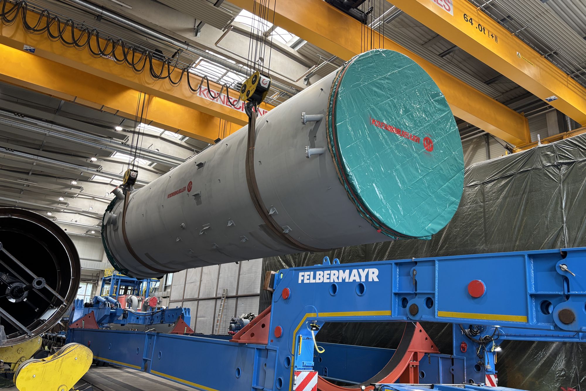 Mehr als 120 Tonnen wiegt das Mittelteil des neuen Oxi2-Reaktors von Westlake Vinnolit. Per Schiff und Spezialfahrzeug kam es nach Knapsack.