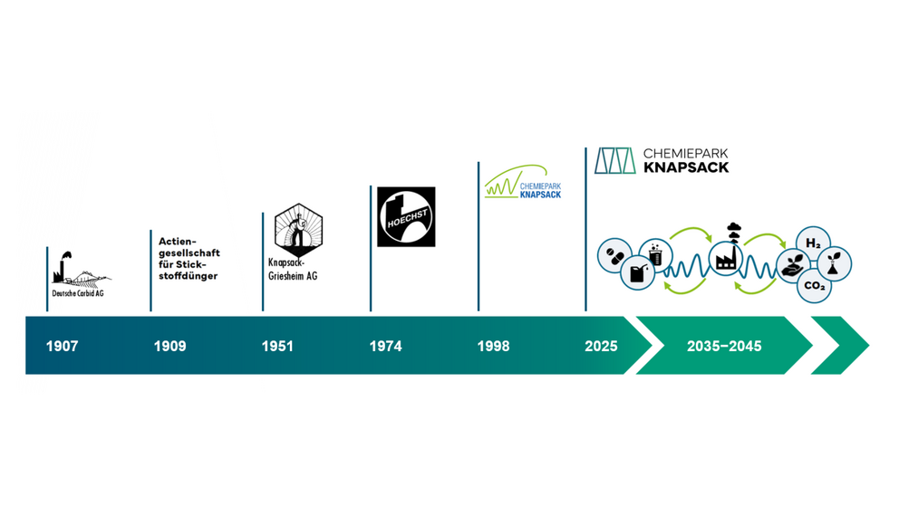 Der Chemiepark Knapsack blickt auf eine über 100-jährige industrielle Entwicklung zurück – und hat sich dabei stets neu erfunden. Was einst als Standort für energieintensive Großchemie begann, wird heute konsequent in Richtung Chemie der Zukunft weiterentwickelt. Ein Ort, der zeigt: Transformation hat hier Tradition.