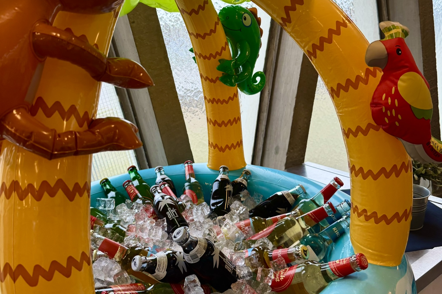 Bei bunten Planschbecken, Liegestühlen, Kunstpalmen und entspannter Musik von DJ Linow, Sven Sadlowski (Werkfeuerwehr YNCORIS), kam trotzdem Sommerfeeling auf. Viele unterhielten sich über Unternehmensgrenzen hinweg. Genau das ist das Ziel der Veranstaltung: mit anderen ins Gespräch zu kommen und gemeinsam Spaß zu haben.