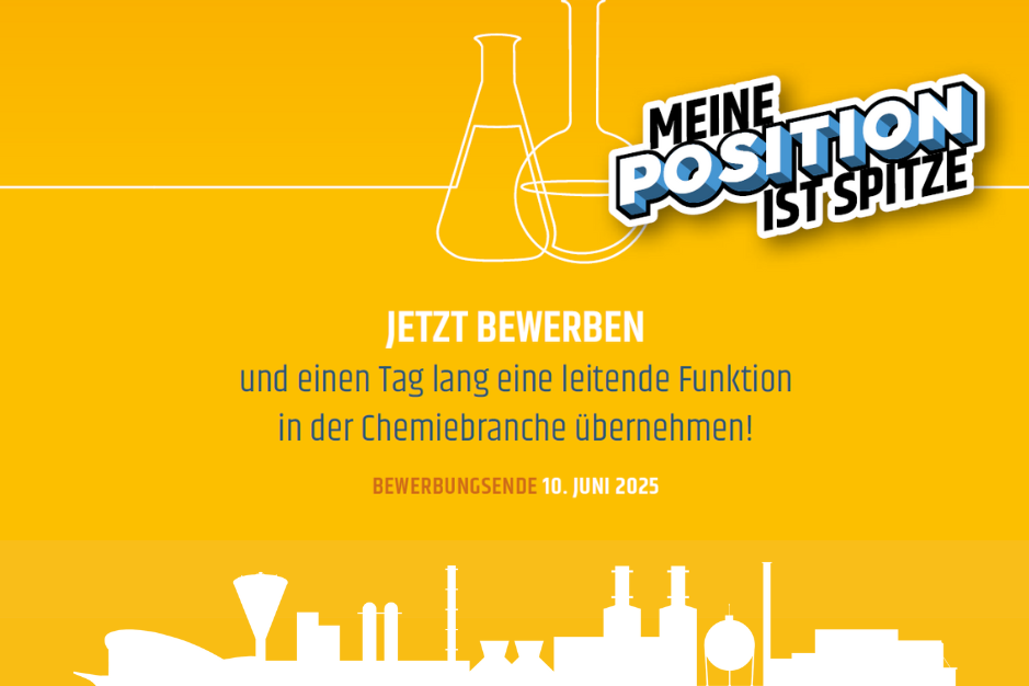 Gemeinsam mit 26 Chemieunternehmen aus dem Rheinland startet die Kölner Brancheninitiative ChemCologne 2025 zum elften Mal die Aktion „Meine Position ist spitze“. Insgesamt stellen die Mitgliedsunternehmen 44 Spitzenpositionen für einen Tag zur Verfügung, auf die sich interessierte Schülerinnen und Schüler ab 16 Jahren aus der Region bis zum 10. Juni 2025 bewerben können.