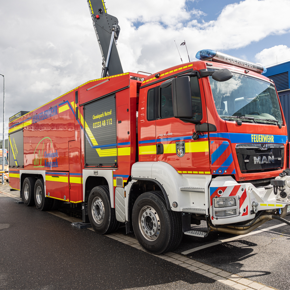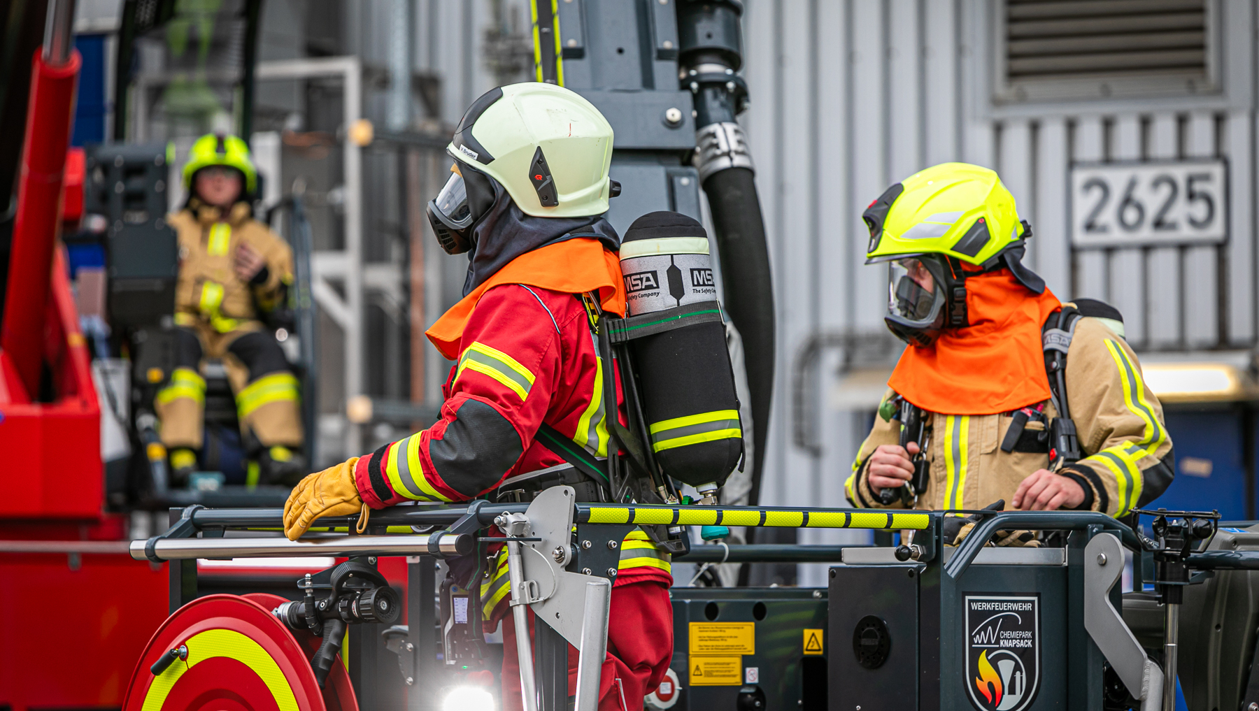 Eine Großübung ist ein ganz besonderes Erlebnis im Chemiepark Knapsack. Dann testen Feuerwehren und Werkskrisenstab die Abläufe bei einem Ereignis. Schließlich muss im Ernstfall jeder Griff sitzen, jeder seine Aufgabe kennen und erfüllen.