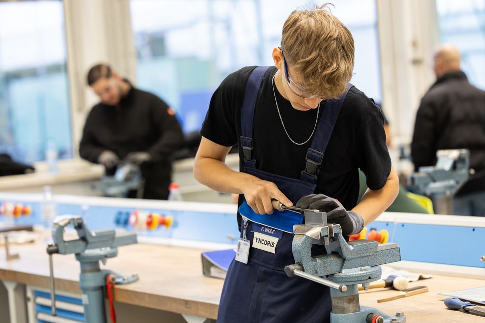 Vor allem die Azubis der laufenden Jahrgänge hatten einen guten Draht zu den jungen Besucher*innen. Im Technikum entwickelten sie beispielsweise ein spannendes Quiz, das schnell das Eis brach und den Nachwuchs neugierig auf die beeindruckenden technischen Anlagen machte. Auch die YNCORIS-Azubis Marc Reif und Niklas Lang vermittelten im IT-Bereich einen ganz direkten Blick auf die Anforderungen und Herausforderungen in ihrem Lehrbereich. „Wir selbst sind schon im zweiten bzw. dritten Ausbildungsjahr“, so Reif, angehender Fachinformatiker für Systemintegration.