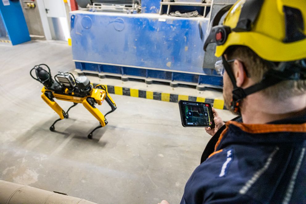 Hochmoderner Roboterhund auf dem Gelände der EEW im Chemiepark Knapsack.