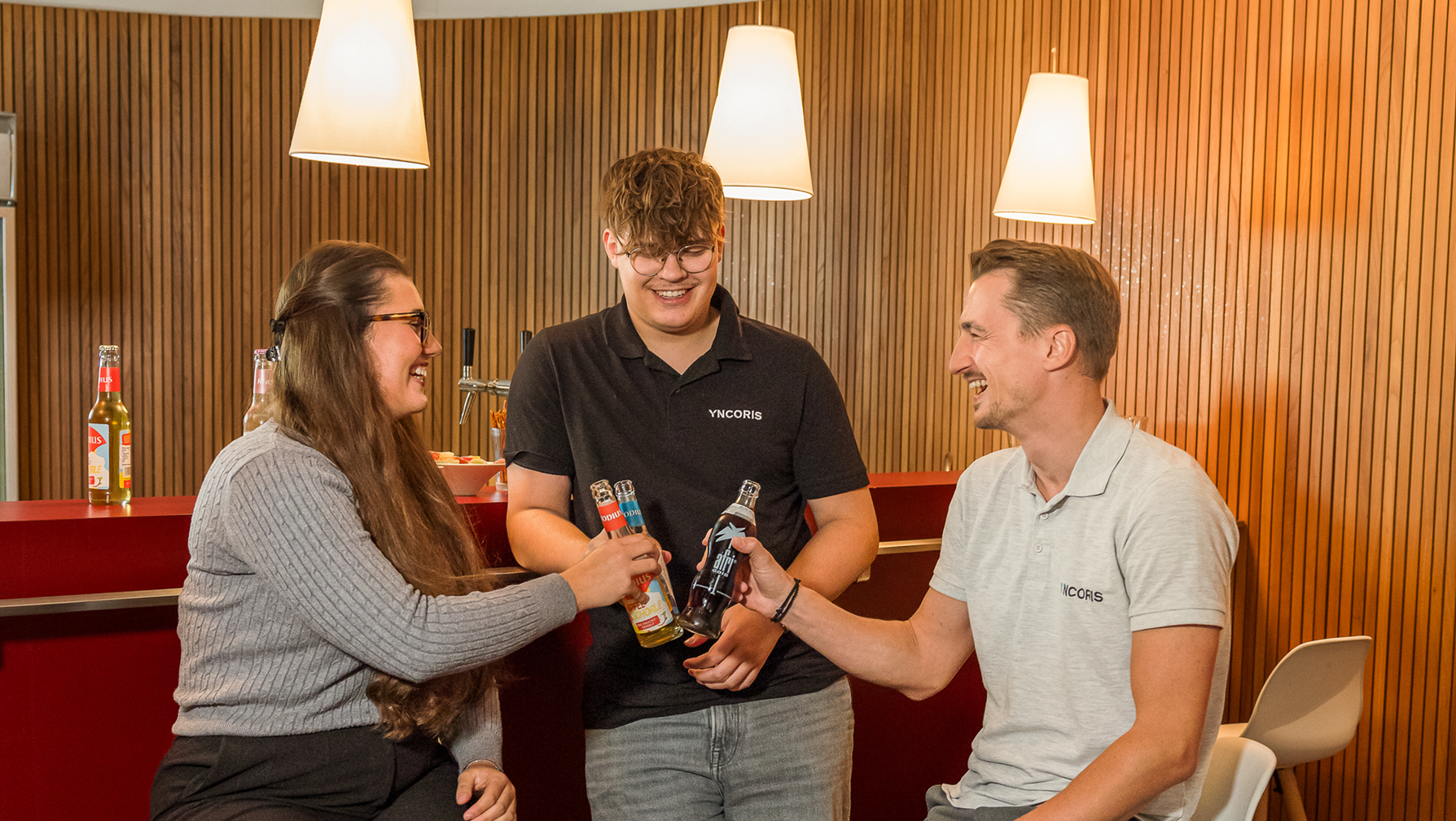 Hombach: Unseren Mitarbeiter*innen wollen den Namen des Unternehmens tragen, das merken wir ganz deutlich. Deshalb haben sich auch alle gefreut, als es endlich Jacken und Kappen mit YNCORIS-Logo gab. Es hat ein bisschen gedauert, aber jetzt erhält jede/r neue Mitarbeiter*in direkt ein YNCORIS-Shirt.