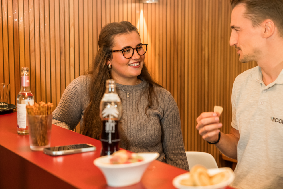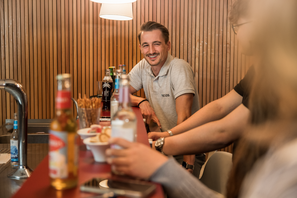Eine Kneipe ist ein Ort für geselliges Beisammensein. Genau diese Funktion übernahm früher der „Knapsack-Treff“ im Feierabendhaus. Hier trafen sich Mitarbeiter*innen nach der Arbeit auf ein Getränk, ein Schnitzel oder Frikadellen mit Kartoffelsalat. Und vor allem: auf einen Schwatz über Gott und die Welt. Diesen „Knapsack-Treff“ hat der KnapsackSpiegel wiederbelebt – mit der Frage: Wie ist es, im Chemiepark jung zu sein? Zwei Auszubildende und ein junger Mitarbeiter plauderten an der Theke…