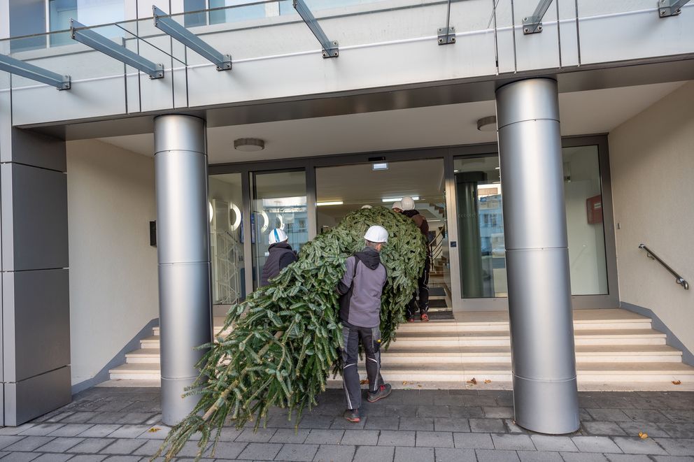 Insbesondere der Baum in der Hauptverwaltung muss – keine Frage – zum ersten Advent stattlich geschmückt im Treppenhaus stehen. „Einmal, vor Jahren, haben wir ein kleineres Exemplar ausgewählt, weil das Aufstellen eines großen Weihnachtsbaums im engen Treppenhausbereich der Hauptverwaltung sehr aufwendig ist und viel ‚Manpower’ bedarf“, erzählt Küpper. „Das Echo war jedoch einhellig: ‚Das ist kein Baum, der der Hauptverwaltung entspricht!’“ Auch in diesem Jahr besitzt er daher wieder die gewohnte beeindruckende Größe.