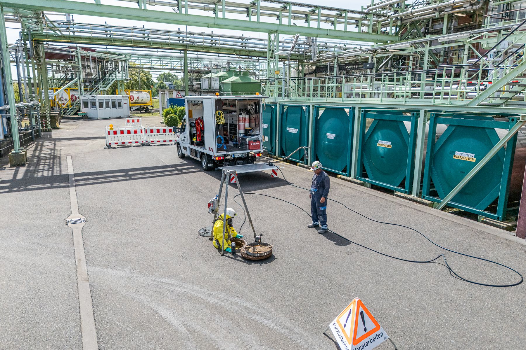 Das Sonderfahrzeug für Kanalarbeiten ist passgenau auf die Einsätze im Chemiepark abgestimmt.